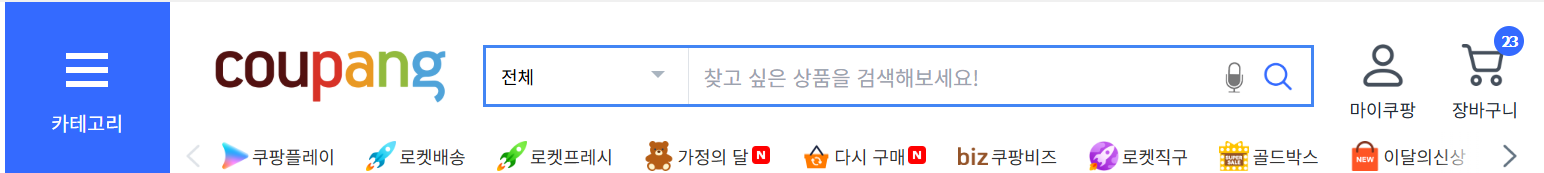 - 우측 상단 마이쿠팡