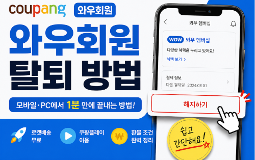 쿠팡 와우회원, 편리하게 이용하다가도 더 이상 필요 없을 때는 간단하게 해지할 수 있습니다. 하지만 어디서 탈퇴해야 하는지 헷갈리는 경우가 많죠.
