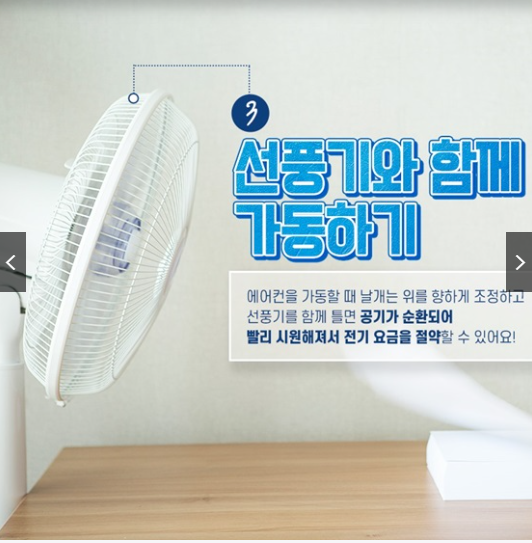 2. 선풍기 또는 써큘레이터 함께 사용: 공기 순환이 빨라져 실내 온도가 고르게 유지되고 실외기 작동 시간을 줄일 수 있습니다.