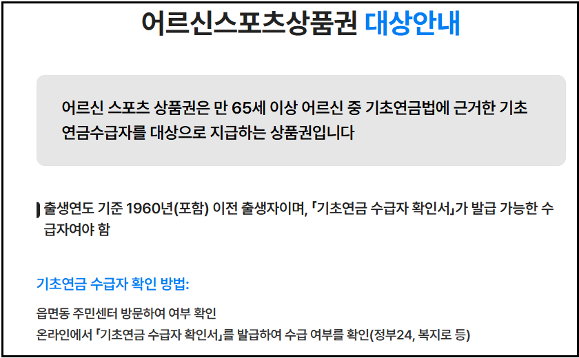 이번 '어르신 스포츠 상품권'은 다음의 조건을 만족하면 신청할 수 있습니다: