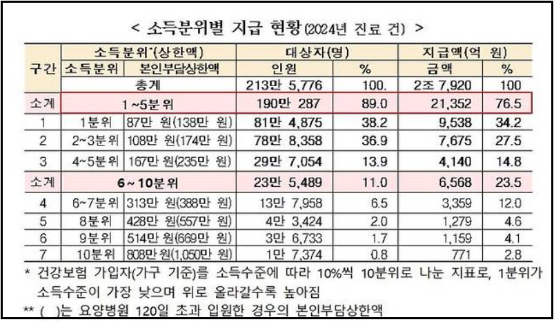 이처럼 본인부담상한제는 경제적으로 취약한 계층과 의료비 지출이 많은 고령층에게 집중적인 혜택을 주고 있어, 사회적 형평성과 복지 기능을 동시에 수행하고 있습니다.