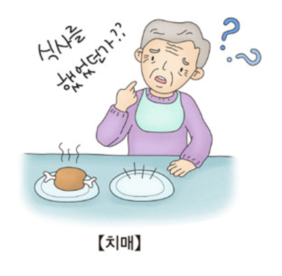 - 기억력 저하 : 최근 일을 잊거나 같은 질문을 반복함