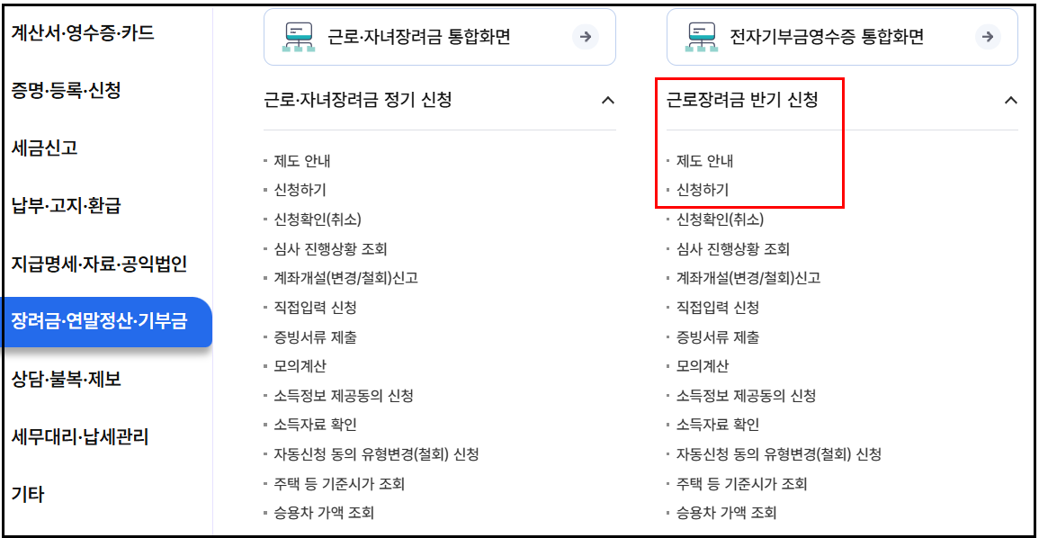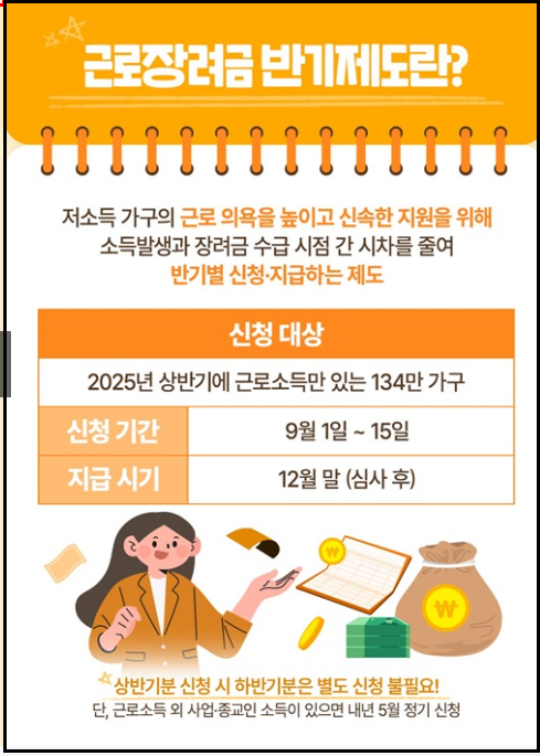 반기제도는 한 해를 상반기와 하반기로 나누어 소득 발생 직후 빠르게 장려금을 지급하는 방식입니다.