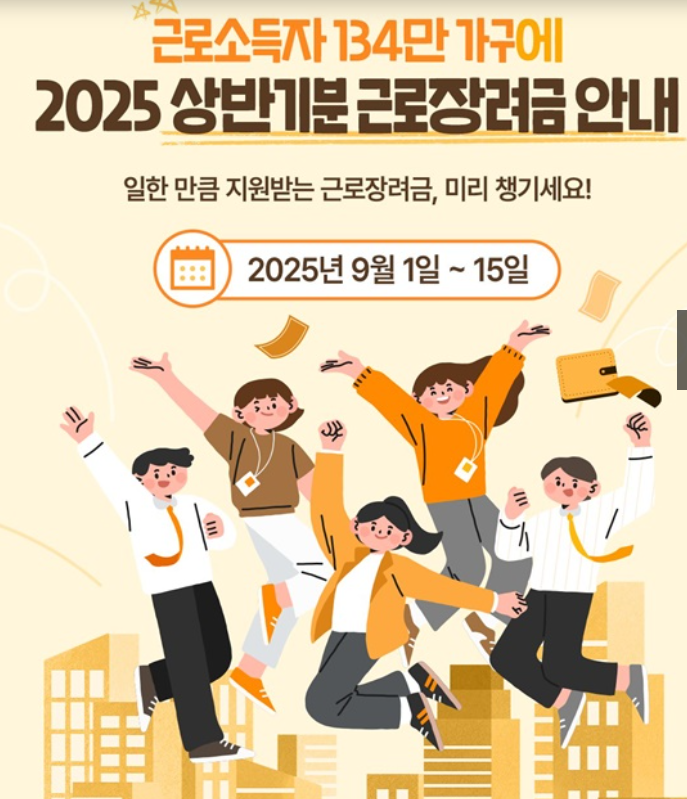 2025년 상반기분 근로장려금 신청 대상은 상반기(1월~6월) 동안 근로소득만 발생한 저소득 가구입니다.