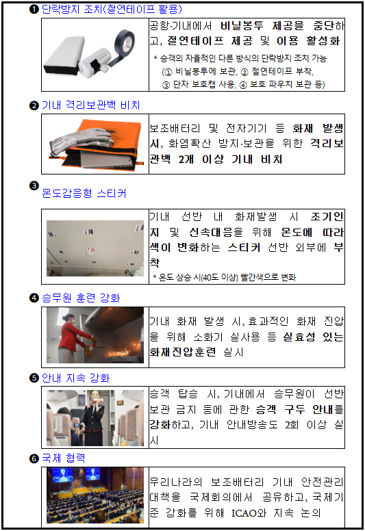 결국 정부와 항공사는 9월 1일부터 새로운 지침을 적용해 비닐팩 대신 절연테이프를 제공하는 방식으로 전환했습니다.