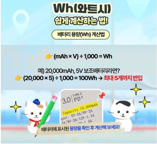 1. 배터리 표기(Wh)를 확인하고 규정에 맞는 제품만 가져가기