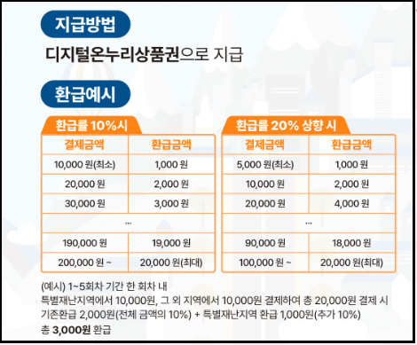| 최대 할인률 | 조건 충족 시 총 최대 30% 할인 효과(특별재난지역 10%추가 환급까지) |