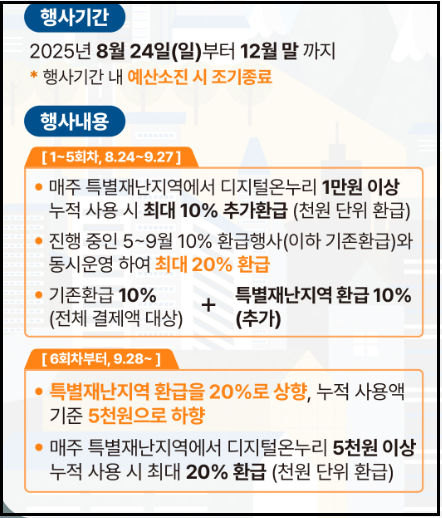 즉, 할인과 환급의 이중 혜택을 모두 누리려면 반드시 디지털 상품권을 활용해야 하며, 정해진 기한 내에 결제해야만 혜택을 받을 수 있습니다.