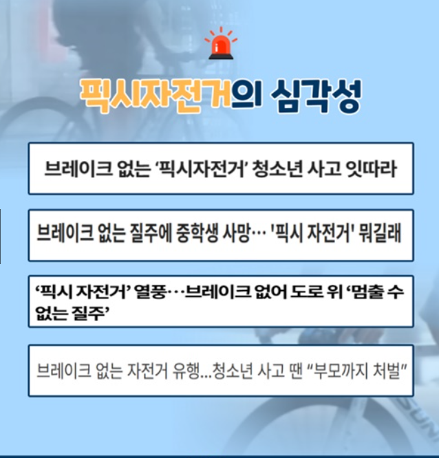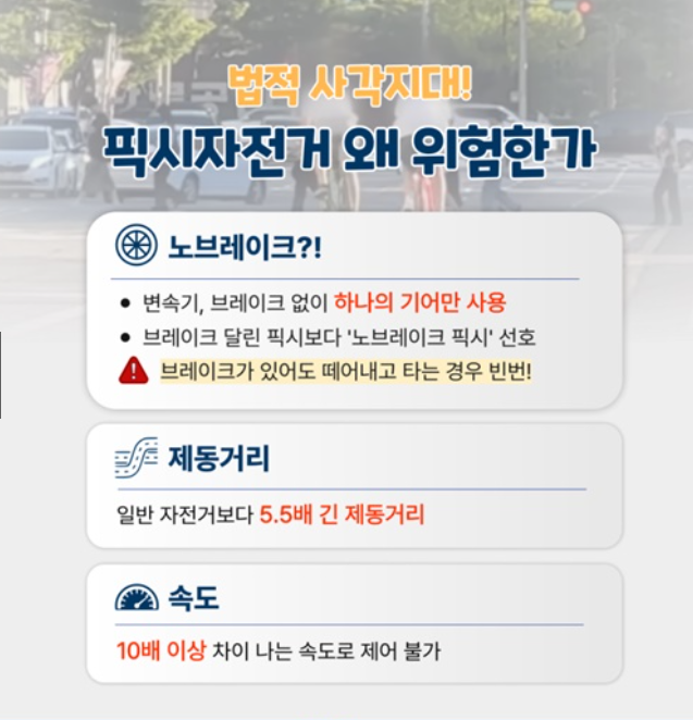 이제 단순한 취미나 이동 수단의 문제가 아니라, 안전과 생명을 지키기 위한 픽시 자전거의 계도 ,단속 강화에 대해서 알려드립니다.