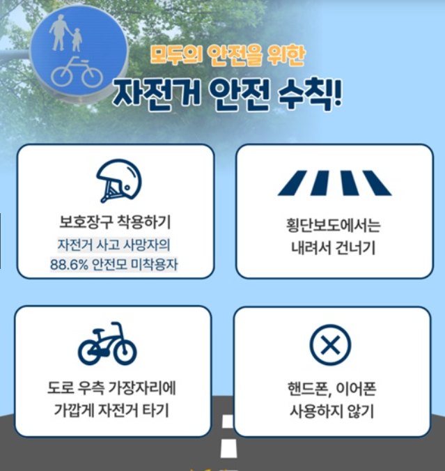 이 기본적인 안전수칙만 지켜도 자전거 사고 위험을 크게 줄일 수 있습니다.