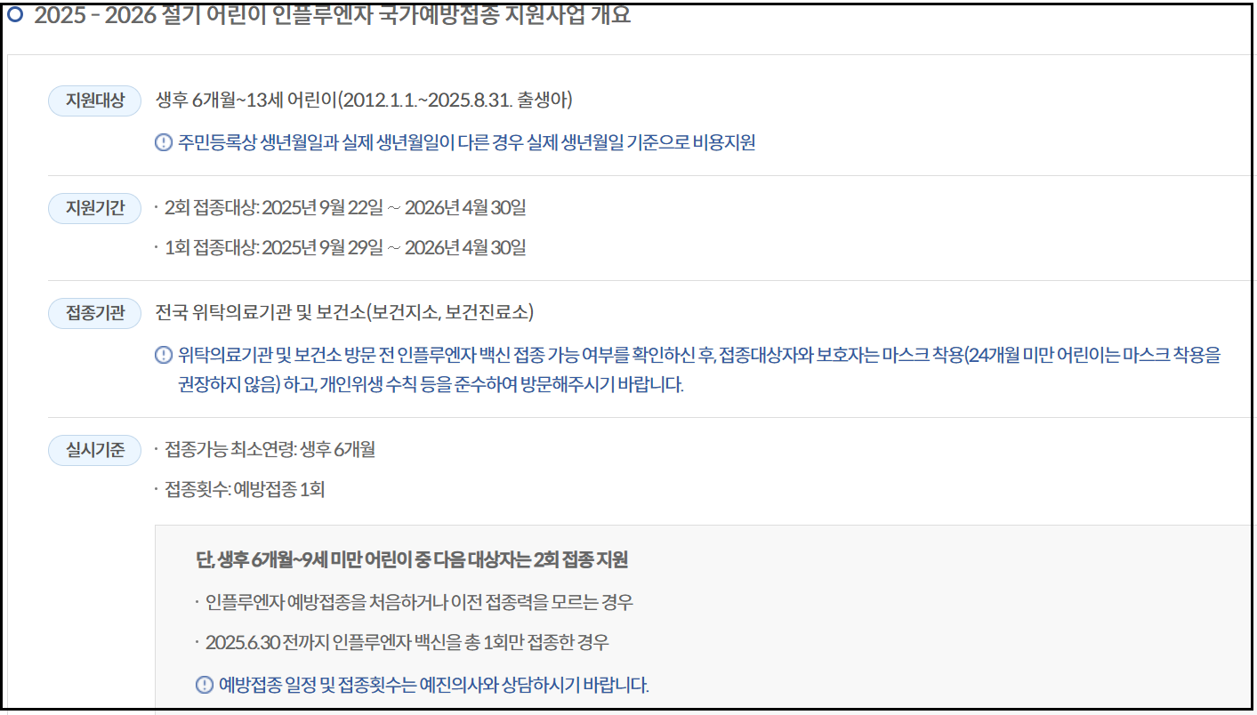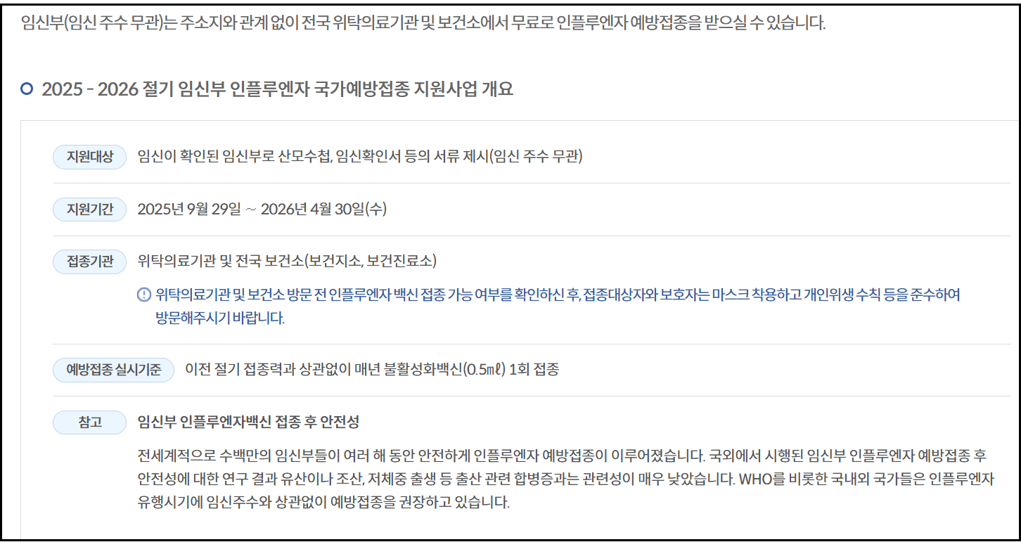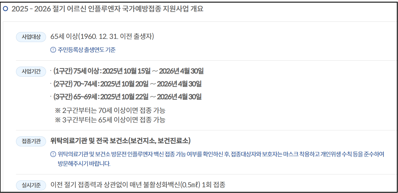 - 접종 기간: 2025년 9월 29일 ~ 2026년 4월 30일