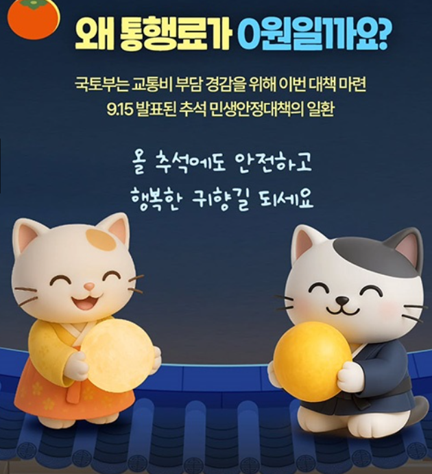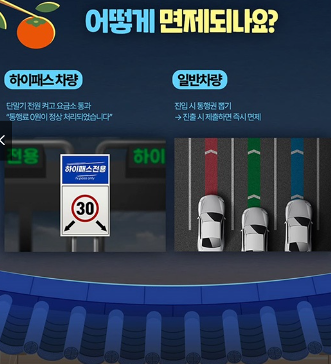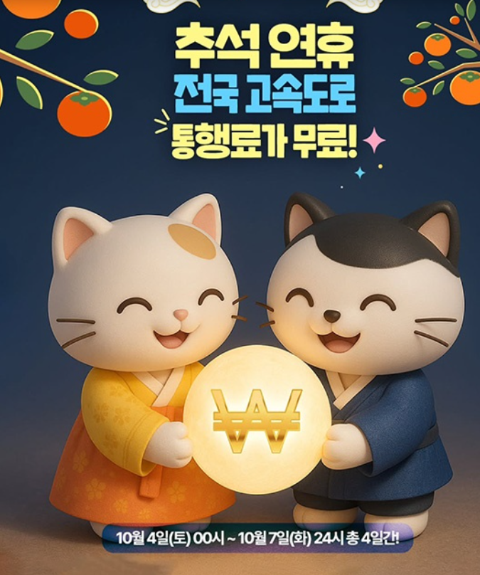 10월 4일부터 7일까지 단 4일간, 고속도로 통행료가 무료로 적용됩니다.