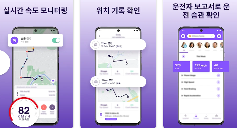 - 글로벌 기반의 앱으로, 가족 단위 사용에 강점이 있습니다. 실시간 위치 확인, 운전 습관 분석, 긴급 알림 기능을 제공하며 프리미엄 요금제를 통해 추가 안전 기능을 사용할 수 있습니다.