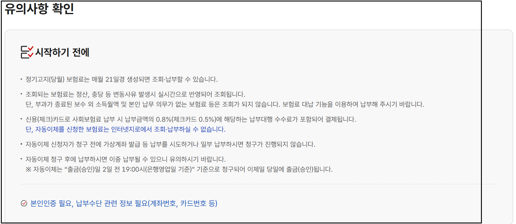 또한 이미 계좌자동이체를 사용 중이라면, 기존 자동이체를 해지한 후 카드 납부를 신청하셔야 중복 출금이나 서비스 거절을 피할 수 있습니다