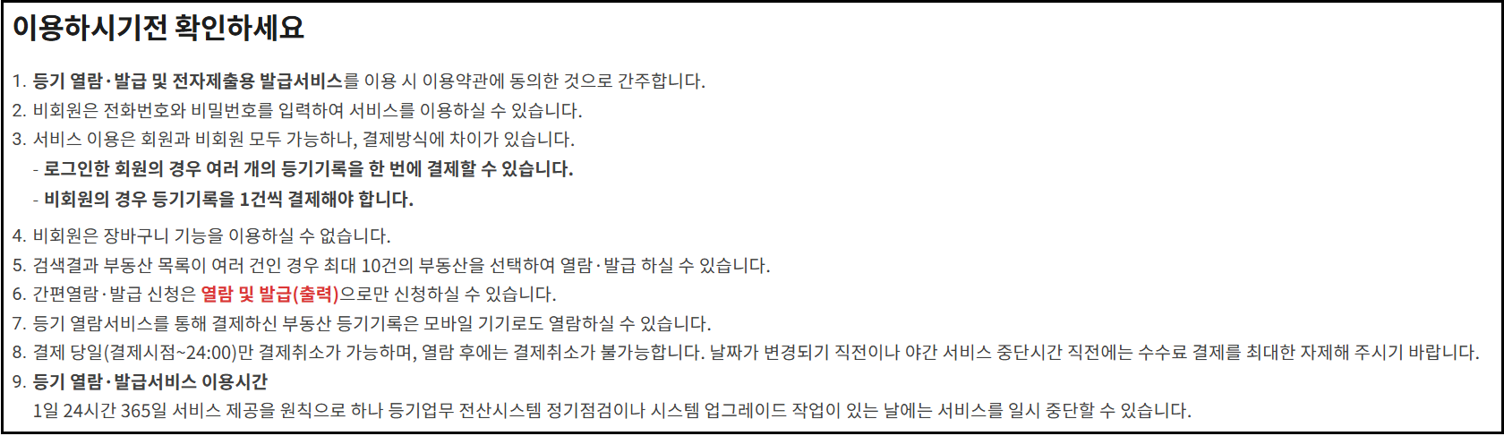 회원가입 없이도 간단히 부동산 등기부등본을 **열람(700원)**하거나 **발급(1,000원)**받을 수 있습니다.