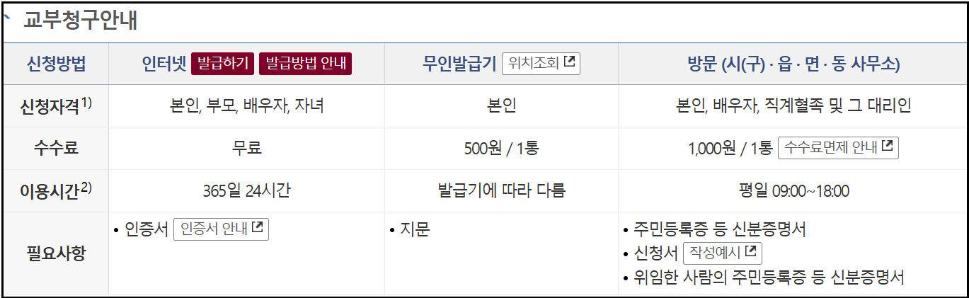 - 본인 또는 가족만 발급 가능 (위임 불가)