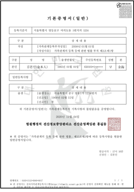 기본증명서는 출생, 혼인, 사망 등 개인의 기본 신분사항을 증명하는 공적 문서입니다.