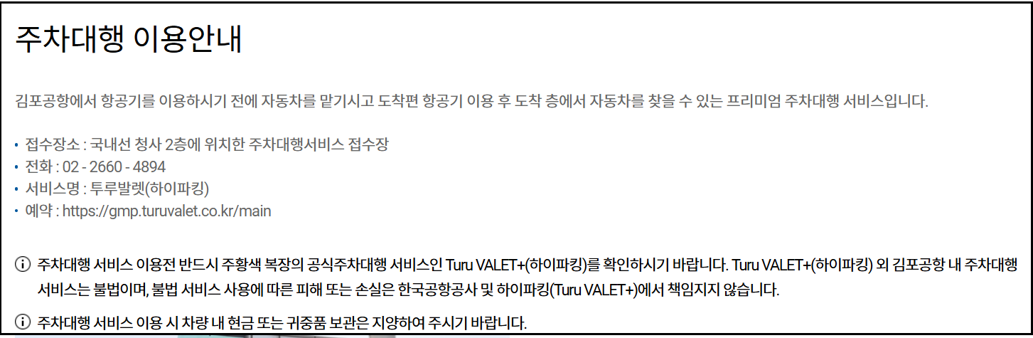 김포공항에는 공식 발렛(주차대행)과 사설 발렛이 있습니다.