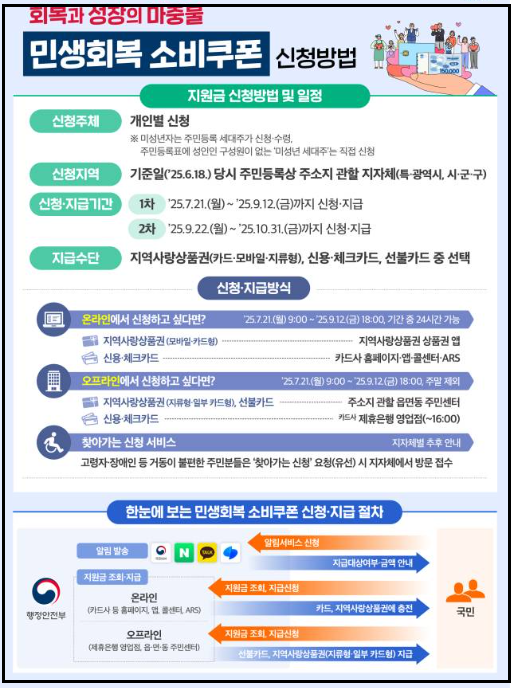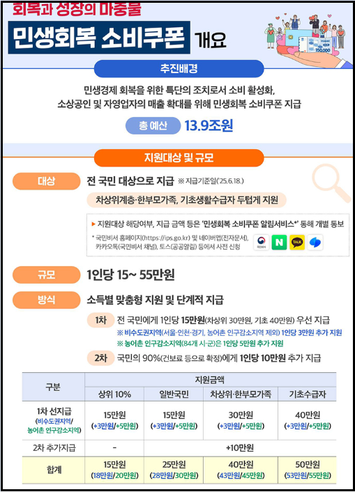 민생회복 소비쿠폰이 진정한 회복의 출발점이 될 수 있도록, 필요한 정보는 빠짐없이 확인하시고, 놓치는 일 없이 신청하시기 바랍니다.