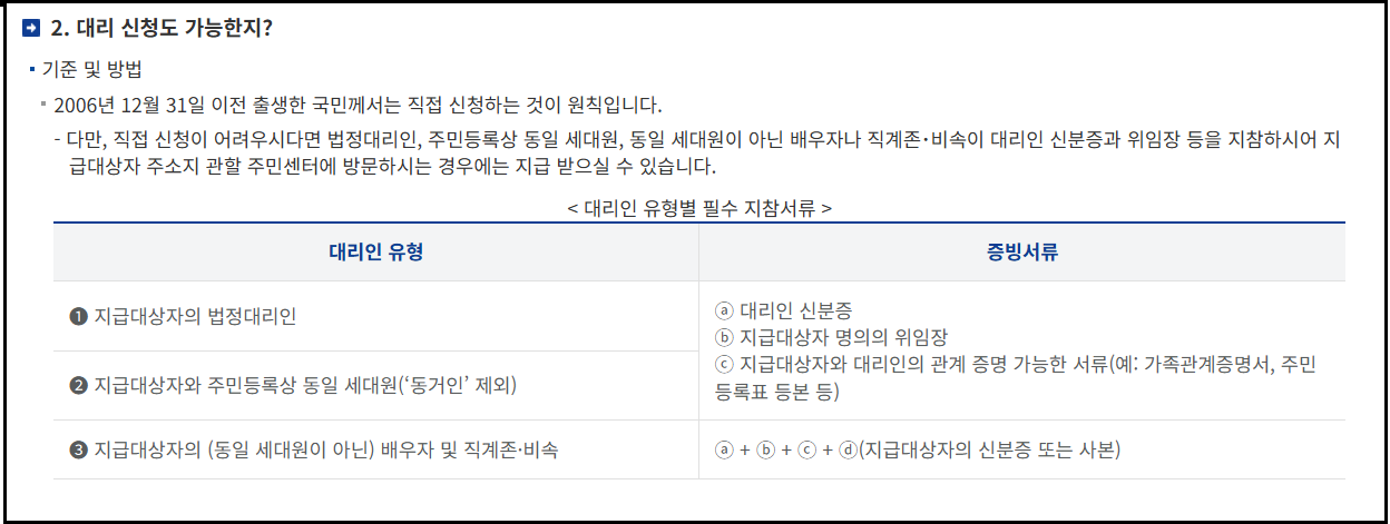 민생회복 소비쿠폰 대리신청시 필요서류 신청방법
