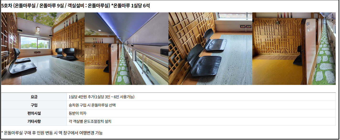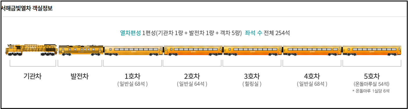 서해금빛열차 온돌마루 가격 안내