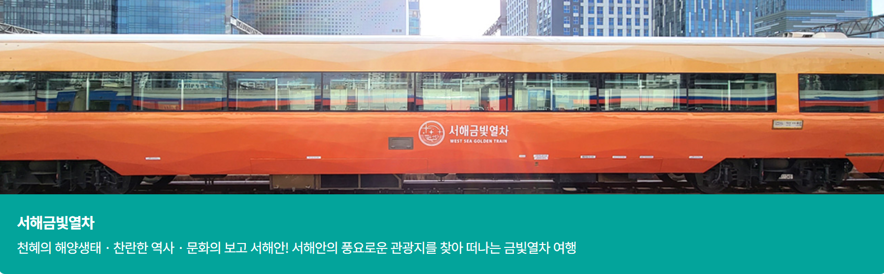 서해금빛열차(G-Train)는 서해안의 풍경을 감상하며 이동 자체가 여행이 되는 관광 전용 열차입니다.