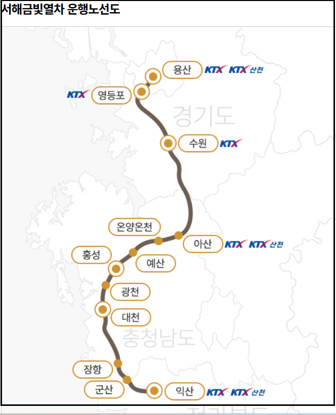 서해금빛열차는 서울 용산역에서 전라북도 익산역까지 운행합니다.