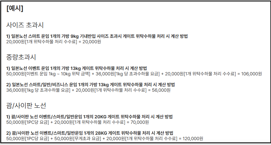 초과 요금은 노선, 무게, 개수에 따라 달라지며, 공항 현장 결제 시 비용 부담이 커질 수 있습니다.