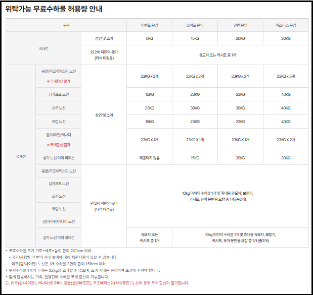 📌 국제선 무료 위탁 수화물