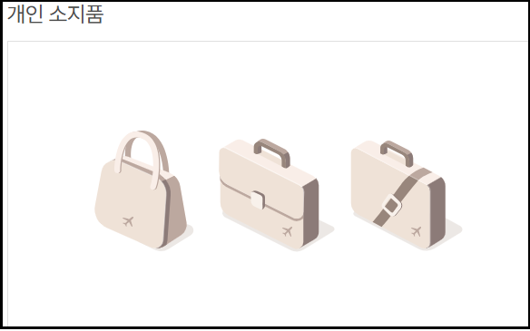 - 개인 소지품 1개 (노트북 가방, 핸드백, 크로스백 등)