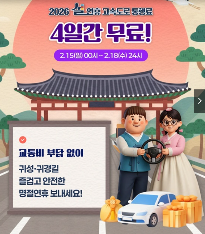 설 명절 기간 동안 전국 고속도로 통행료가 면제됩니다.