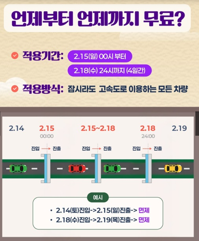 설명절 고속도로 통행료 면제 기간