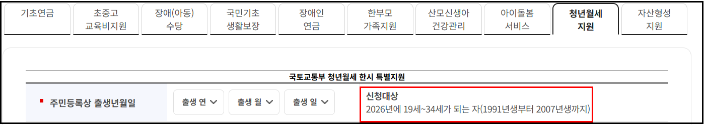 - 만 19세 ~ 34세 (일부 지자체는 39세까지 확대)