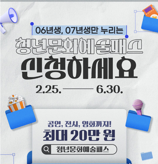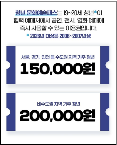 청년 문화예술패스는 청년들이 공연·전시·영화 등 다양한 문화예술을 경험할 수 있도록 정부가 관람비를 지원하는 제도입니다.