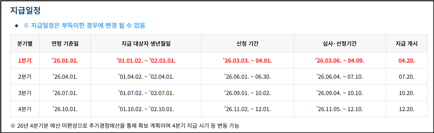 2026년 1분기 신청이 시작되면서 대상, 신청 방법, 지급일 등을 궁금해하는 분들이 많습니다. 지금부터 신청 조건부터 지급 방식까지 한눈에 정리해 드리겠습니다.